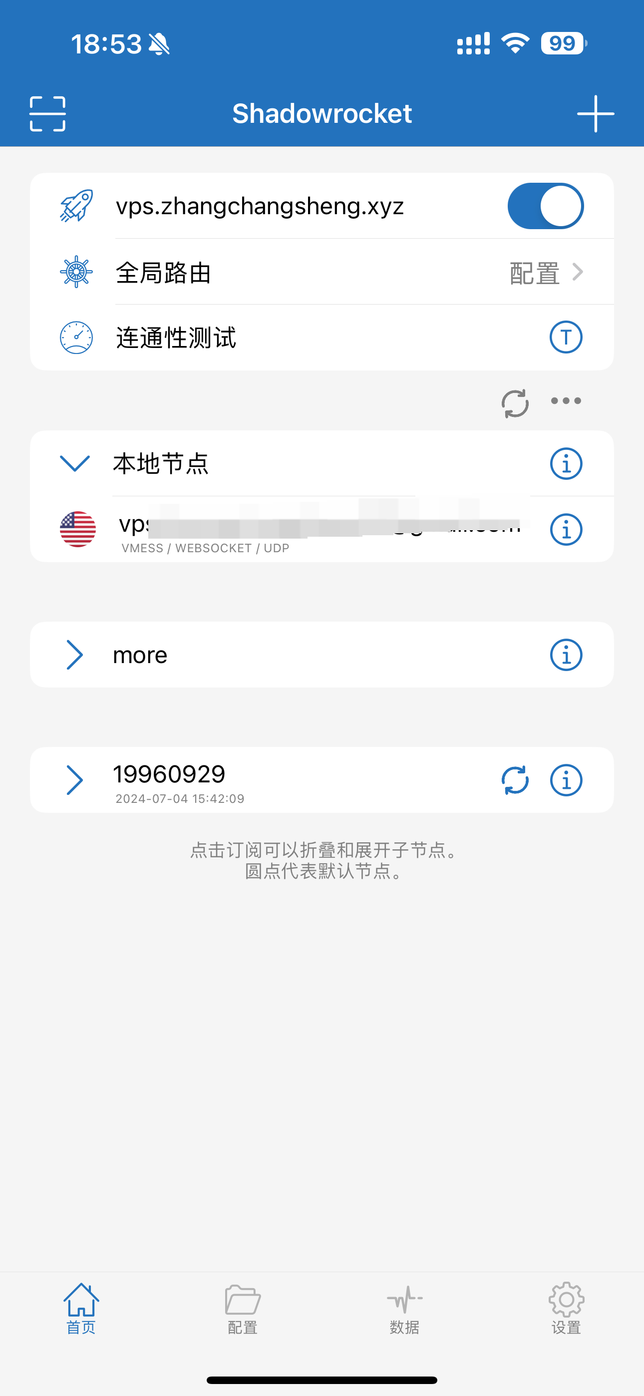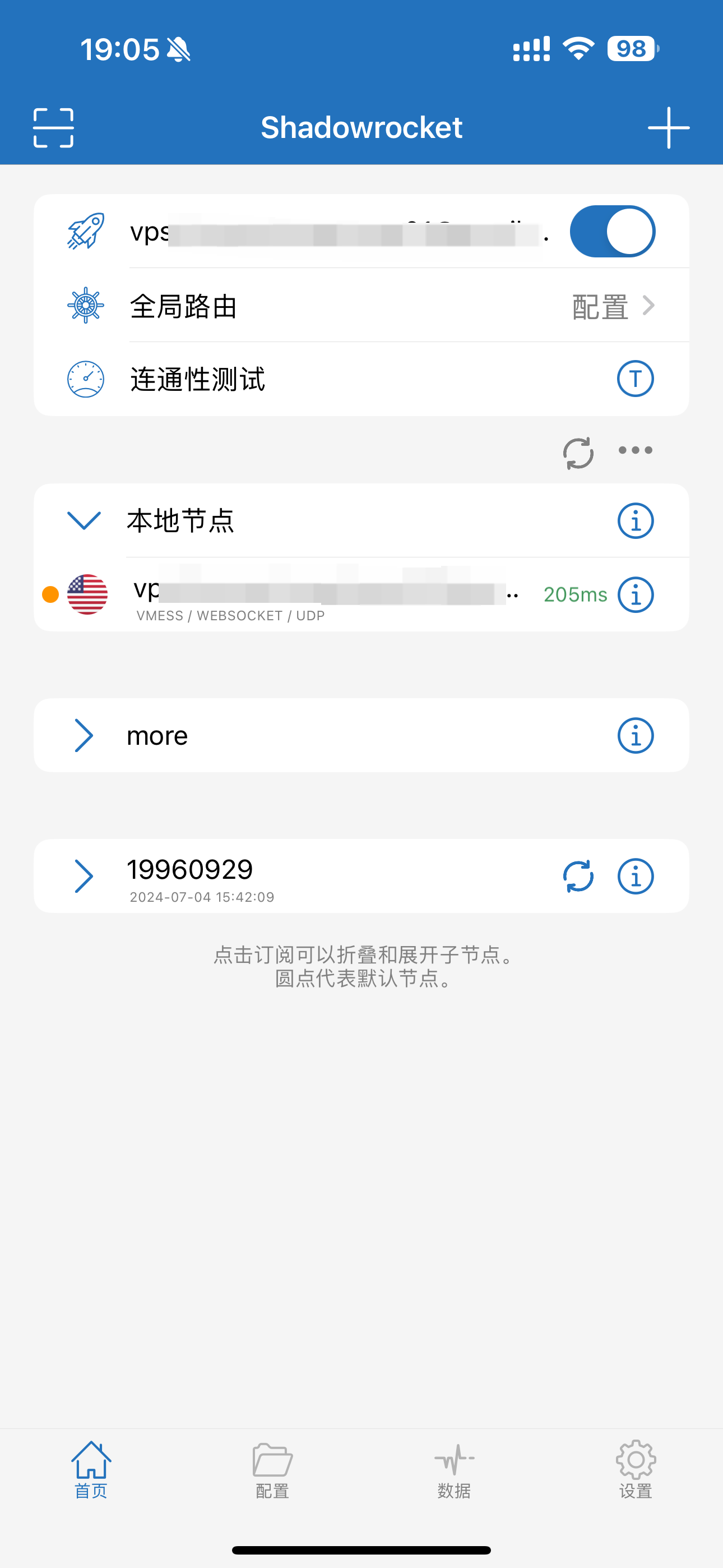 这里以小火箭为例,点击右上角的 ➕ 会默认读取剪切板的链接.确定后,会在本地节点中显示